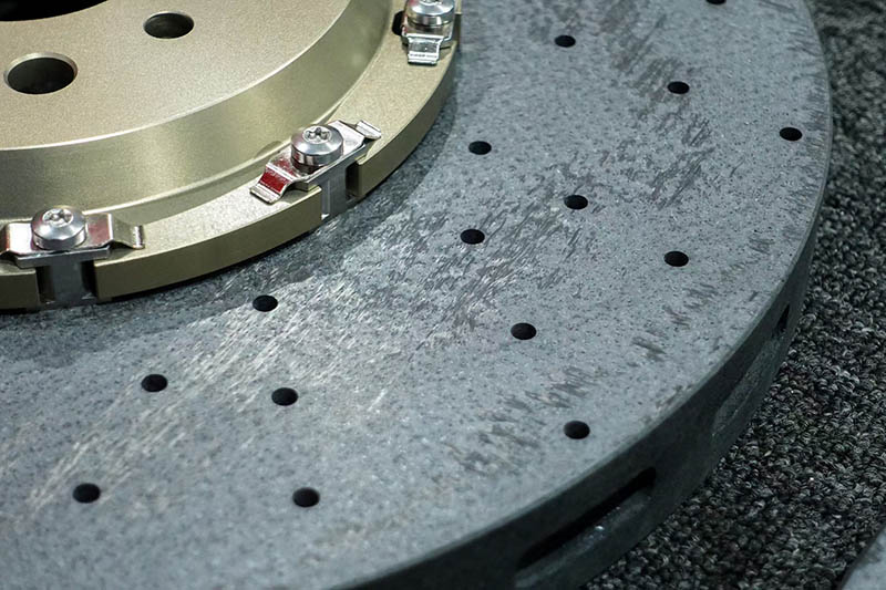A Carbon Ceramic egy kettős mátrixú kompozit anyag, egy háromdimenziós filc vagy fonat szénszálból, mint erősítő váz, és egy mátrix, amely szénből (C) és szilícium-karbidból (SiC) áll. Így az anyag a szén és a szilícium-karbid előnyeivel párosul, nagy szívóssággal, alacsony sűrűséggel, jó hőstabilitással, nagy keménységgel, hőütésállósággal. nagy kopásállóság és nagy oxidációállóság. Magas hőmérsékletű környezetben a szénmátrix puffert és szívósságot biztosít a hő számára, hogy megakadályozza az anyag megrepedését, legalább 1650 ℃ hőmérsékletet képes visszavenni. A gyártási folyamat magában foglalja egy C/C kompozit anyag elkészítését, majd a SiC fázis bevezetését olyan módszerekkel, mint a folyékony szilícium impregnálás. Például egy C/C előformát először olyan módszerekkel állítanak elő, mint a kémiai gőzleválasztás vagy a gyanta impregnálással történő karbonizálás. Ezután az előformát érintkezésbe hozzuk folyékony szilíciummal, ahol a szilícium magas hőmérsékleten szénnel reagál, és SiC keletkezik, egyidejűleg kitöltve az előforma pórusait. A kiváló átfogó tulajdonságoknak köszönhetően a szénkerámia tárcsákat széles körben alkalmazzák fejlett vadászrepülőgépekben, nagy sebességű sínekben, versenyautókban és sportautókban stb., Az anyag megfelel a nagy sebességű, nagy terhelésű és magas hőmérsékletű környezet szigorú követelményeinek a fékrendszerben ezeknél a csúcskategóriás berendezéseknél.