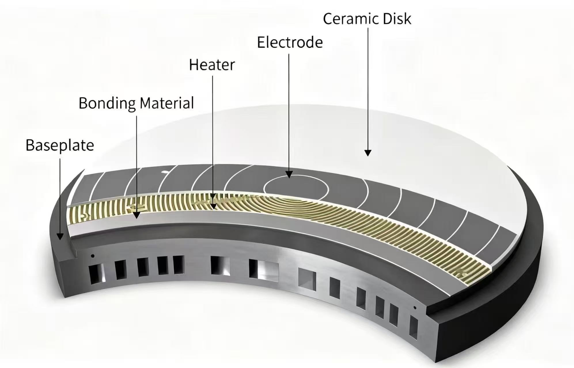 A mechanikus tokmányokkal ellentétben a kerámia elektrosztatikus tokmányok csökkentik a mechanikus mozgó alkatrészeket, csökkentik a szemcsés szennyeződések hatását az ostya minőségére, hatékonyan védik az ostya felületének tisztaságát és javítják a termék kihozatalát.