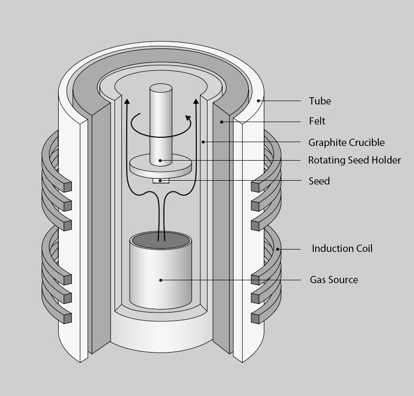 A kristálynövekedési kemence a szilícium -karbid kristályok növekedésének alapvető berendezése. Hasonló a hagyományos kristályos szilícium-minőségű kristálynövekedési kemencéhez. A kemence szerkezete nem túl bonyolult. It is mainly composed of the furnace body, heating system, coil transmission mechanism, vacuum acquisition and measurement system, gas path system, cooling system, control system, etc. The thermal field and process conditions determine the key indicators such as the quality, size, and conductivity of the SiC crystal.