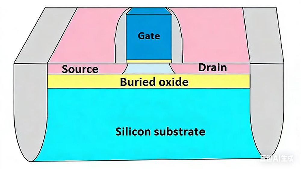 A SiO2 szigetelőréteg jelenléte hatékonyan elszigeteli a tranzisztort az alatta lévő szilícium hordozótól. Ez az elszigetelés csökkenti a nem kívánt áramot az aktív rétegből a hordozóba. A szivárgási áram a hőmérséklettel nő, így jelentősen javul a chip megbízhatósága magas hőmérsékletű környezetben.