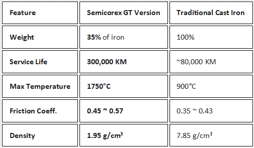 Tömegcsökkentés: A GT-verzió egy szabványos öntöttvas korong tömegének mindössze 35%-a.