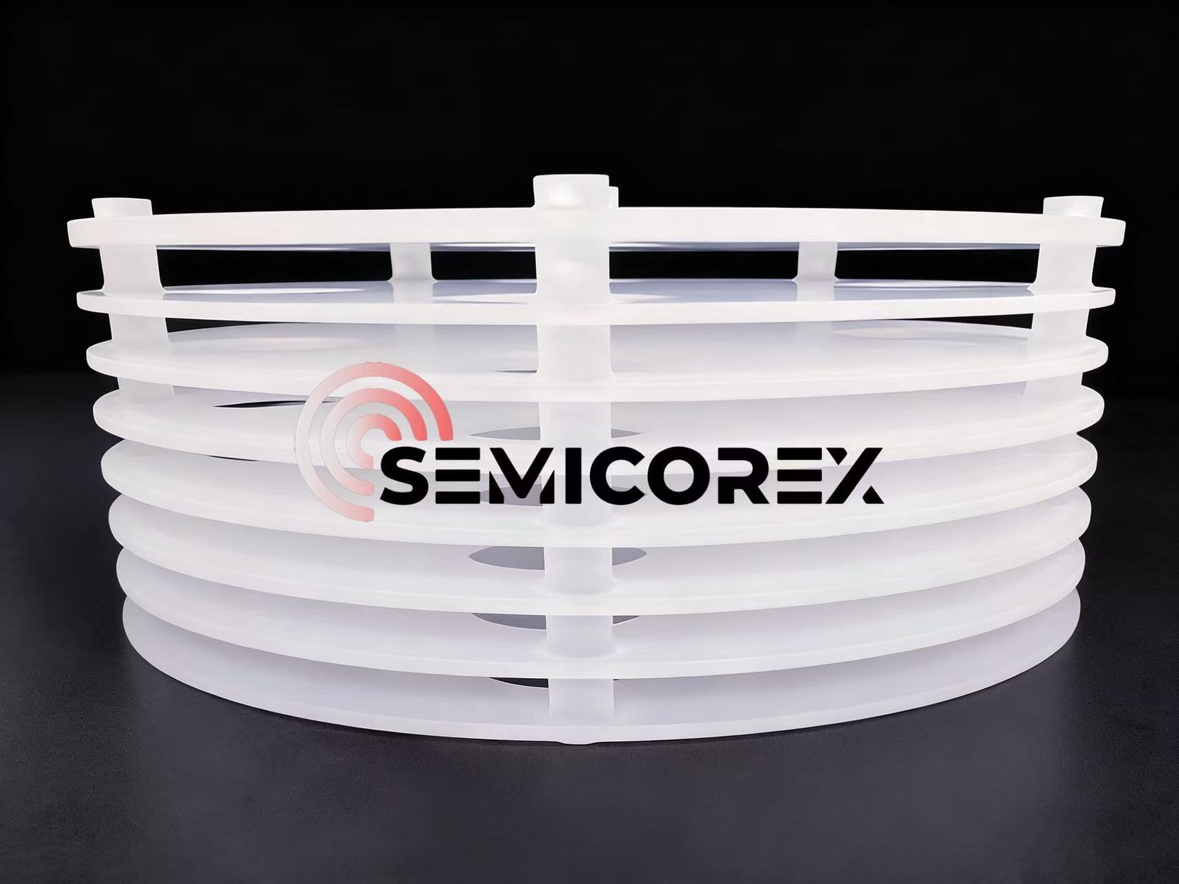 Kvarc termosz tartályokfőként olyan alapelemekből áll, mint a héj, alap, tartóoszlop és szigetelőlemez. A tartóoszlopok és a pozicionáló dudorok precíz kialakításának köszönhetően a kvarc termosz tartályok szilárdan rögzítik a szilícium lapkatartókat, hogy megbízható alátámasztást biztosítsanak, ezáltal megakadályozzák az elmozdulást a magas hőmérsékletű félvezető gyártási folyamatok során. Eközben többrétegű szigetelőszerkezetük hatékonyan minimalizálja a hőveszteséget, és állandó kemencehőmérsékletet tart fenn, hogy egyenletes rétegvastagságot biztosítson a szilícium lapkák számára a feldolgozás során. A félvezetőgyártási eljárások pontosságát és a termékminőséget garantáló fontos elemek a Semicorex kvarc termosz tartályai.