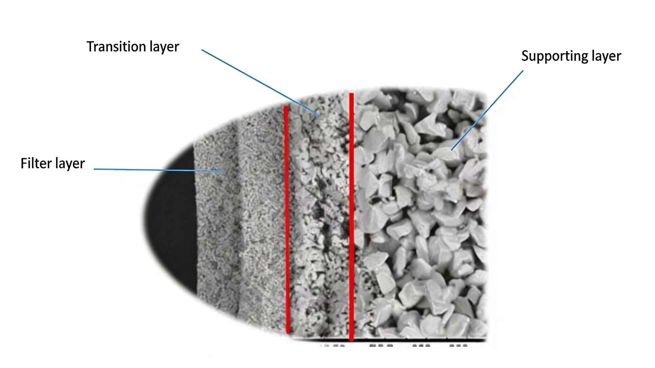 SemicorexSiC kerámiaA lapos membránok gradiens pórusszerkezetet mutatnak, amely háromrétegű kompozit szerkezetből áll: egy 0,04 µm-es sűrű mikroporózus elválasztórétegből, egy 0,5 µm-es sűrű mikroporózus másodlagos elválasztórétegből és egy 8 µm-es nyitott makropórusos hordozórétegből. Ez a speciálisan kialakított gradiens pórusszerkezet lehetővé teszi a különböző méretű molekulák, részecskék vagy ionok precíz fizikai szitálását. A pórusméretnél kisebb anyagok zökkenőmentesen átjutnak a membrán pórusain, míg a pórusméretnél nagyobb anyagok a membrán felületén vagy a pórusokon belül megmaradnak, így valósul meg a hatékony elválasztás és szűrés.