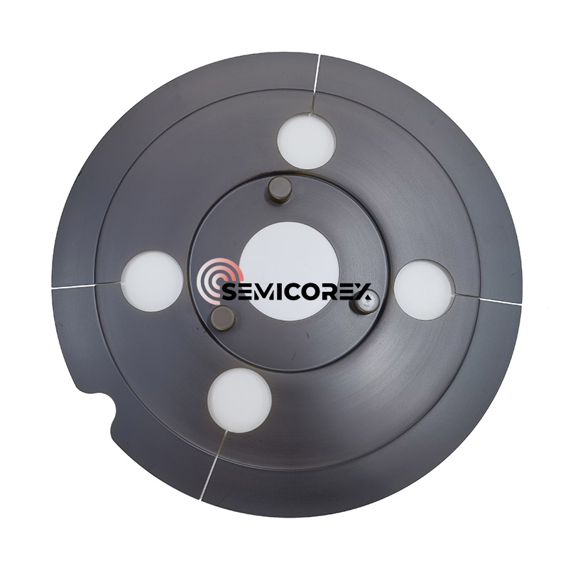 Az alkatrész precízen fúrt furatokkal kiegészített tárcsaszerkezete lehetővé teszi a gázok és folyadékok szabályozott áramlását a folyamatkamrákban. Az alkalmazástól függően a lyukak beállíthatók a melléktermékek áramlásának vagy a vízelvezetésnek a kezelésére a tiszta és stabil környezet érdekében az ostyagyártás során. Egy epitaxiás alkalmazásban például a SiC Fin segíthet a technológiai gázok vagy a kondenzátum áramlásának irányításában, ezáltal javítja a film egyenletességét és minimalizálja a részecskeszennyeződést. A maratási eszközökben hatékonyan távolítja el a reaktív anyagokat és a folyékony melléktermékeket, megvédi a kamra sérülékeny komponenseit a vegyi lebomlástól.